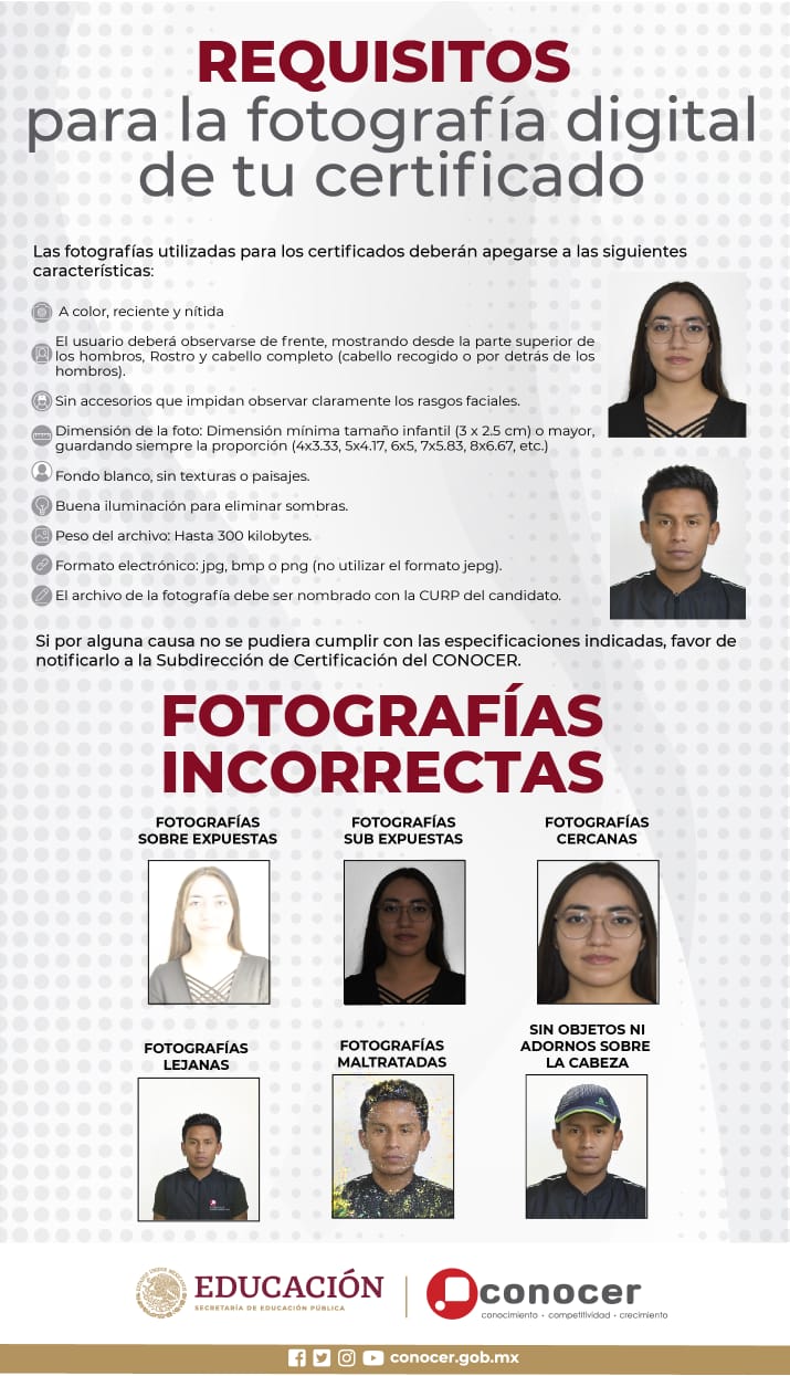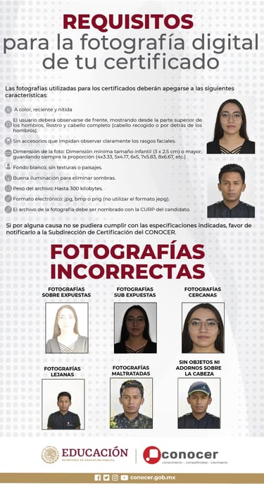 📷 FOTOGRAFÍA TAMAÑO INFANTIL (De acuerdo a las especificaciones del CONOCER)